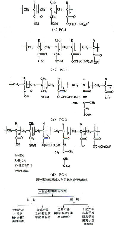 (6) 分子結構上的自由度大,實現減水劑高性能化的潛力更大。