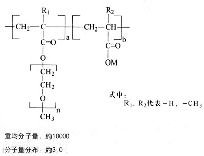 聚羧酸系高性能減水劑是通過分子設計方法合成的具有梳形結構的超塑化劑,從分子結構上解決了傳統萘系、三聚氰胺系高效減水劑所存在的坍落度損失大、減水率相對較低以及對環境產生危害等方面的問題.已經成為綠色混凝土減水劑發展的一個重要方向。 PC 聚羧酸系高性能減水劑是以甲氧基聚氧乙烯醚為原料,通過酯化反應、聚合反應得到的一種具有表面活性和梳形結構特征的高效減水劑。其特點為: