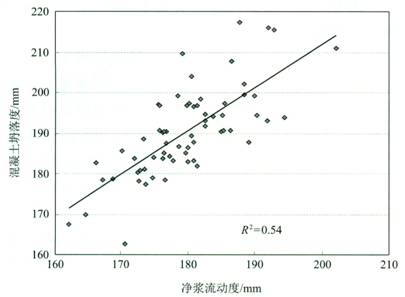 2) 定期以混凝土坍落度檢驗結(jié)果評價本廠水泥與高效減水劑的相容性,同時評價凈漿流動度檢驗結(jié)果和混凝土坍落度的相關(guān)性。