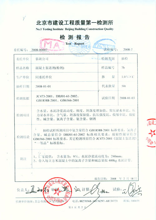 試驗表明, SP403 對兩種水泥的適應(yīng)性均較好,而 JH — 2 對達強水泥的適應(yīng)性較好對桐星水泥的適應(yīng)性較差。對桐星水泥進行化學分析,發(fā)現(xiàn)水泥中摻加了一種鐵礦渣 ( 后經(jīng)水泥廠證實 ) ,它對 TH — 2 產(chǎn)生強烈的吸附作用, TH — 2 是低鈉型萘磺酸鹽改性復(fù)合產(chǎn)品,是以磺酸為主導的親水官能團和以脂肪酸得來的直鏈烷基為主導的憎水基聚合而成。根據(jù)這一信息對 TH — 2 進行配方調(diào)整,調(diào)整后的 TH — 2 對桐星水泥的適應(yīng)性較好,在工程的實際使用中混凝土的流動性、保水性等各項指標均滿足工程要求,混凝土 3 天平均強度已達 73 %, 28 天平均強度達到 138 %。實例說明,單憑外加劑本身我們難以評價其好壞,關(guān)鍵是要先做適應(yīng)性試驗,然后在工程上應(yīng)用。