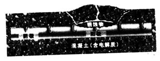 由于鋼筋混凝土結構外部的介質首先腐蝕混凝土,然后通過混凝土影響鋼筋。事實上對鋼筋而言,混凝土即是決定鋼筋性能的一種介質。所以,提高混凝土自身的防腐能力是確保鋼筋免于銹蝕的基本條件。可造成混凝土腐蝕的外部介質有酸性土壤及土壤或地下水中所含 CO 2 、 HCO 、 SO 、 C1 — 、 Mg 2+ 、NH 等,其中, Cl — 直接銹蝕鋼筋,其余的則先腐蝕混凝土,最終導致鋼筋銹蝕。