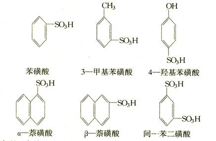 烴分子中的氫原子被磺酸基(— SO 3 H )取代所生成的化合物叫磺酸。其通式為 R — SO 3 H 。