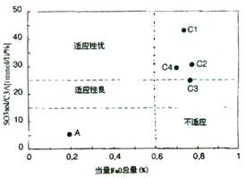 此外,在配制對坍落度經(jīng)時損失有嚴格要求的混凝土時,選用的水泥含堿量不宜過高,因為含堿量高的水泥,凝結時間較短。同時,水泥中 SO 3 與 C 3 A 的比例含量應適宜 ( 見圖 1) 。