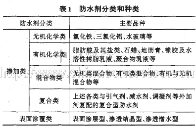 1 防水劑的主要品種