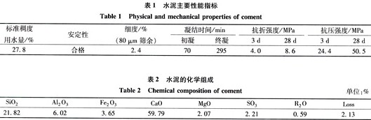 (1)水泥:海螺P.O 42.5水泥,主要化學組成如表1所示,主要性能指標如表2所示;