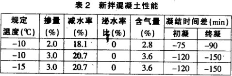 化學外加劑:以聚羧酸高效減水劑為減水組分試驗自行配制的防凍劑。各組分包括:聚羧酸高效減水劑、某有機胺類、某多元醇、硫氰酸鹽。