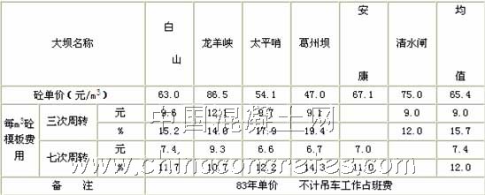 2、日本:模板費(fèi)用占施工中的費(fèi)用為:拱壩47%,重力壩30%。