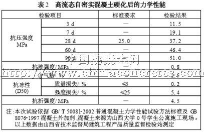 3. 2 高流態自密實混凝土硬化后的力學性能(見表2)