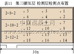 第三碾壓層檢測層檢測點布置(表11)。