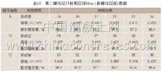 第二碾壓層只檢測層深30cm(距碾壓層面)數據(表10)。