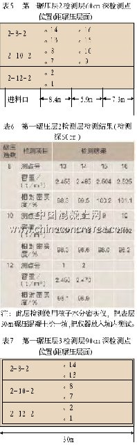 第一碾壓層1檢測層30cm深檢測點位置(距碾壓層面)(表3)。