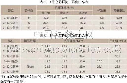 A號倉芯樣抗壓強度匯總表(表21)。