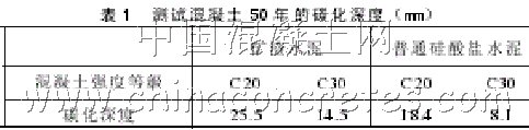 保證保護(hù)層厚度,就相應(yīng)地延緩了混凝土碳化深度到達(dá)鋼筋表面的時(shí)間,推遲鋼筋銹蝕。如果保護(hù)層過(guò)小就等于加快了混凝土碳化到鋼筋表面的時(shí)間,使鋼筋早銹蝕,縮短建筑物使用壽命。已有的實(shí)驗(yàn)資料(見表 1)說(shuō)明,礦碴水泥混凝土的碳化速度比普通硅酸鹽水泥的快,混凝土強(qiáng)度等級(jí)低比強(qiáng)度等級(jí)高的碳化快。采用普通硅酸鹽水泥或較高的混凝土強(qiáng)度等級(jí),能有效延緩混凝土碳化。梁鋼筋的混凝土保護(hù)層要求是 25mm,如果施工失控減少了 10mm,就相當(dāng)于使鋼筋提前 10 年或 20 年銹蝕,相應(yīng)地縮短了工程使用壽命。如果鋼筋沒有混凝土保護(hù)層,鋼筋將會(huì)很快銹蝕,其后果不堪設(shè)想。有不少工程受力鋼筋外露生銹嚴(yán)重,加固處理費(fèi)工費(fèi)時(shí)增加成本,使混凝土結(jié)構(gòu)耐久性降低。