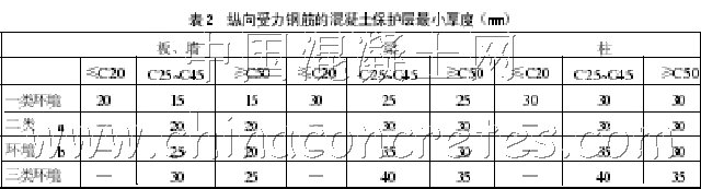 根據(jù)科學(xué)實(shí)驗(yàn)成果,新國(guó)家標(biāo)準(zhǔn) GB50010—2002《混凝土結(jié)構(gòu)設(shè)計(jì)規(guī)范》在強(qiáng)制性條文中明確規(guī)定:縱向受力的普通鋼筋及預(yù)應(yīng)力鋼筋,其混凝土保護(hù)層最小厚度(鋼筋外邊緣至混凝土表面距離)不應(yīng)小于鋼筋的公稱直徑,且應(yīng)符合表 2 的規(guī)定。