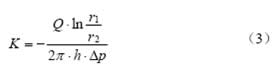 這樣就得到圓環形試件滲透系數計算公式(3),