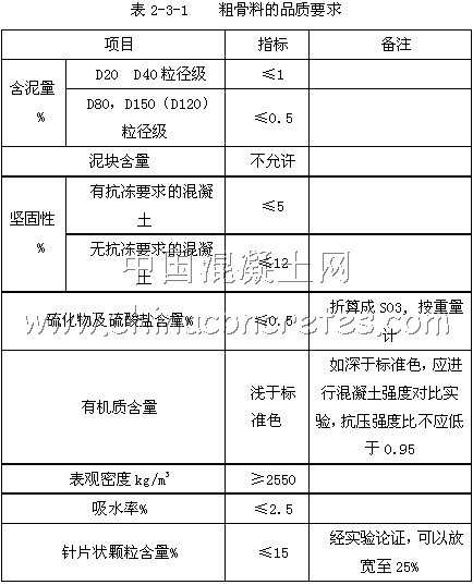 2.3.2 骨料的質(zhì)量要求
