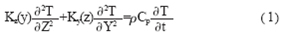 式中: Kz, Ky 分別為熱流方向和其垂直平面的導熱系數; ρ為材料密度; Cp 為材料比熱。