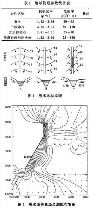 [關鍵詞] 繞壩滲流 潛水面水位場矢量法 激發極化法