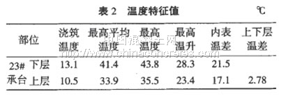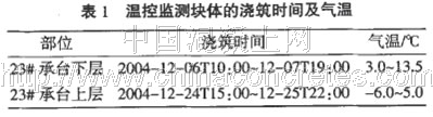 (2) 混凝土的澆筑溫度應小于T+4℃(T為澆筑期旬平均氣溫),混凝土最高溫升不超過29℃。
