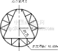 鋼拱架共分為四片,其中三片為等同大小,弧長L=3.56m,另一片L=0.316m,作為楔子,方便拆模而設(shè)置的,放在頂部位置。在使用鋼拱架之前,可在洞外采用架子管進(jìn)行拼裝,必須保證拼成的圓形拱架周長為10.996m(直徑d=3.5m),并用噴漆編號(hào),以備配套使用。(鋼拱架見圖3)。