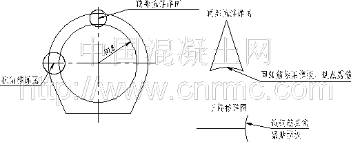 為了保證成形混凝土滿足設(shè)計(jì)要求。抗偏移錨桿裝置要和底板架立模板鋼筋在同一位置,抗浮設(shè)置要在模板安裝完后設(shè)置,其位置要在鋼拱架上面,受力面積要大,要做到每一榀鋼拱架上都要設(shè)置抗浮裝置。如果有千斤頂,最好使用千斤頂,它可以重復(fù)利用,操作簡(jiǎn)單,減少了材料投入。另外為了防止底部和腰部抗浮筋在結(jié)構(gòu)面出現(xiàn)露筋問題,可在抗浮筋和模板接觸處采用混凝土墊塊形式。抗偏移和抗浮型式見圖4。