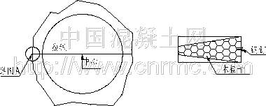 在基礎(chǔ)面處理之前,先通過測(cè)量確定洞室兩側(cè)腰線位置,一般每10m測(cè)量定出腰線位置,然后用噴漆作標(biāo)記,標(biāo)出樁號(hào)和高程位置,拉線繩定中心(見圖1),用與洞室同半徑的竹竿繞中心旋轉(zhuǎn)一周,檢查洞壁是否存在欠挖的部位,如存在大面積欠挖,用手風(fēng)鉆鉆孔,進(jìn)行爆破處理。如存在個(gè)別點(diǎn)欠挖,用風(fēng)鎬進(jìn)行處理,以保證滿足設(shè)計(jì)襯砌厚度,底板是否欠挖可以自制標(biāo)尺參照腰線點(diǎn)量測(cè)。此項(xiàng)工序做到位,方可進(jìn)入基礎(chǔ)面處理工序。將倉號(hào)內(nèi)巖石表面的積水、泥漿、巖屑、油污等用高壓水沖洗,其他有害的附著物和松散物、半松散的或風(fēng)化的巖塊等雜物人工清理干凈。如地下水比較豐富,采取妥善引排。