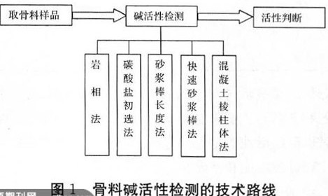 綜合現有國內外骨料堿活性檢測方法的優缺點,采用的試驗方法及技術路線如圖1所示: