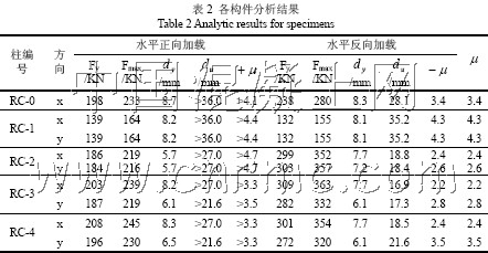對于延性,從圖6 和表2 中均可以看出,單軸加載條件下的RC-0 并非總是偏于保守的,除RC1 外,其余三種均明顯偏低,并大致接近。這表明延性與加載角有關,RC-2 則有可能是延性較為不利的加載角情形,可起到控制、估計的作用。