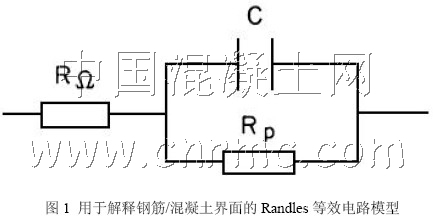 恒流脈沖法首先是通過一個外加輔助電極對一個鋼筋/混凝土體系施加一個小且短暫的恒流擾動信號,隨后切斷電源,記錄并分析鋼筋電位的衰減變化曲線。一般來說,鋼筋混凝土界面系統可以采用一個簡單的Randles 電路描述,見圖1。因此,電位隨電流階躍ΔI 的關系可由式(1)給出[22]: