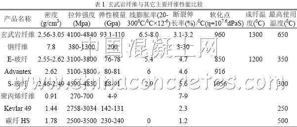 玄武巖纖維具有優異的物理力學性能,既耐酸又耐堿、更好的溫度穩定性,較高的彈性模量、抗拉強度和極限應變率(表1)。并且同屬硅酸鹽系列與水泥基的相容性好。在攪拌過程中,能夠較好地分散均勻,能滿足現有設備和施工條件的要求,對抑制水泥基早期收縮裂縫的產生有更明顯的效果。