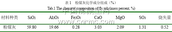 1.2 粉煤灰:阜新發(fā)電廠排放的粉煤灰,其化學(xué)成分及基本性質(zhì)指標(biāo)詳見(jiàn)表1、表2;