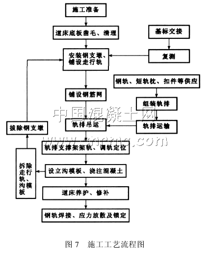5.1.1 采用鋪軌基地預裝短軌排,混凝土灌注采用普通輸送法