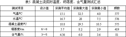 施工階段檢測項目包括坍落度、溫度、含氣量。II期面板檢測結果見表5。