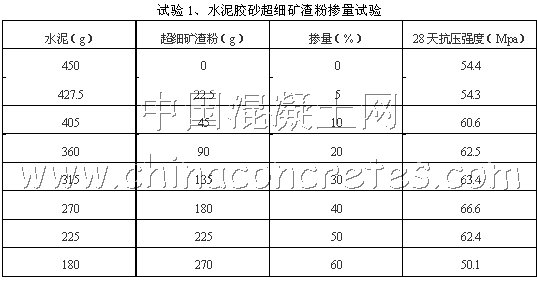 根據以上兩點,并結合水泥的品種、標號、強度和大氣溫度以及超細礦渣粉的質量確定其最佳摻量。