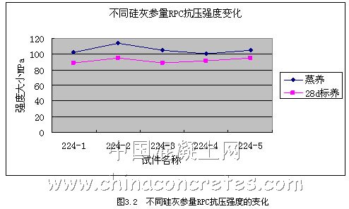一般說來,集料比水泥石基體要堅固,集料較高的彈性模量能抑制各種收縮,如塑性收縮、干操收縮、自收縮等,這就導致在水泥石---粗集料界面上產生剪力及拉力,剪力及拉力隨顆粒尺寸增大而增加,若這些力超過了粘結強度,就會引起附加開裂。另外,水泥石---粗集料界面即過度區是傳統混凝土的最薄弱區域。因此,減小混凝土中集料顆較尺寸,取消粗骨料,成為RPC混凝土的設計原則之一。