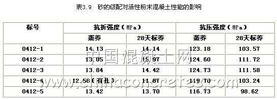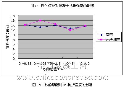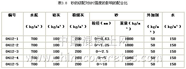 實驗對比研究了砂的顆粒尺寸對RPC強度的影響。其配合比如表3.8所示。
