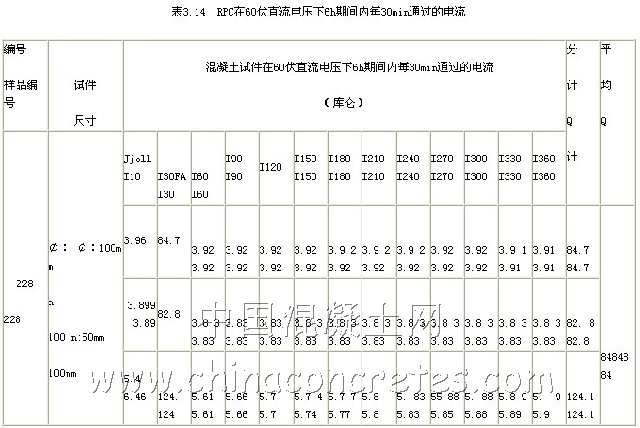 根據試驗得出的數據Q=84<100和表5.4,我們可以判斷RPC材料的抗氯離子滲透性為不滲透。