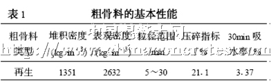 本試驗水泥采用江南水泥廠出產(chǎn)的鐘山牌42.5R 普通硅酸鹽水泥,砂為普通黃砂,天然骨料為碎石,最大粒徑為30mm。再生粗骨料由某小區(qū)住宅樓廢舊梁人工破碎而成,水為普通自來水。粗骨料的基本性能見表1 所示。