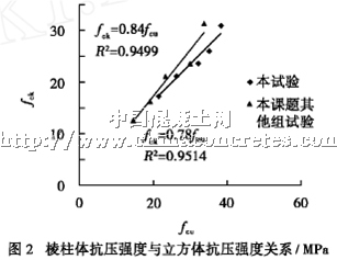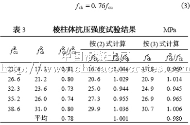 而規(guī)范規(guī)定普通混凝土棱柱體抗壓強(qiáng)度與立方體抗壓強(qiáng)度關(guān)系: