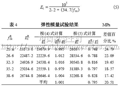 對普通混凝土彈性模量與立方體抗壓強(qiáng)度關(guān)系: