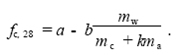 從式(3)的結(jié)構(gòu)看,此式無法從目標(biāo)強(qiáng)度推出試配參數(shù)mc /mw 或ma /mw ,因而只適合用于預(yù)測混凝土強(qiáng)度,無法用以計(jì)算混凝土的配比.