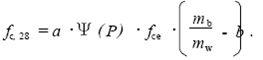 式中: fce為水泥標(biāo)準(zhǔn)膠砂抗壓強(qiáng)度; a, b均為回歸系數(shù);Ψ ( P)為摻合料強(qiáng)度效應(yīng)函數(shù); mb 為膠凝材料總量.