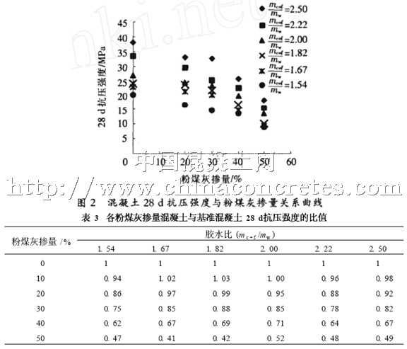 2 粉煤灰對預(yù)拌混凝土強(qiáng)度的影響