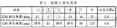 滲水的原因, 是由于其內部的孔隙形成連通的滲水通道, 這些通道除產生施工振搗不密實或裂縫外, 主 要來源于水泥漿中多余水分蒸發后留下的毛細孔、水泥漿泌水所形成的通道及骨料下部界面聚集的水隙。混凝土的滲透性與水膠比、水泥的水化程度、粗骨料的最大尺寸、骨料的級配、礦物摻合料、骨料與水泥漿界面的裂縫和骨料的滲透性等因素有關, 因為這些因素決定了混凝土的結構、孔隙等。