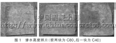 C80 高強高性能混凝土的密實度高, 抗滲性能遠遠超出C40 普通混凝土, 國外Aolsiefer 所用的試驗也指出, 摻有硅粉的高強高性能混凝土在4MPa 的水壓下是不透水的[3]。另外礦渣對混凝土的孔徑分布、孔的幾何形狀的改善有好的作用, 因而能夠提高混凝土的抗滲性能,從而提高混凝土的耐久性[4]。