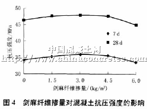 2.3 劍麻纖維摻量對(duì)水泥混凝土抗壓強(qiáng)度的影響