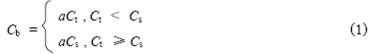 式中, Cb 、Ct 、Cs 均用氯離子質量占膠凝材料總量的百分比表征,分別表示氯離子結合量、氯離子總量和一定水泥品種的氯離子正比例吸附臨界值(對應圖1 各曲線的轉折點橫坐標) ; a 為一定水泥品種當Ct < Cs 時的氯離子結合率(對應圖1 各曲線斜線段的斜率) 。