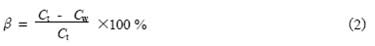 依據試驗測得的砂漿水溶性氯離子含量Cw 和氯離子總含量Ct ( Cw 、Ct 均用氯離子質量占水泥總量百分比表示) ,可以計算氯離子結合率:
