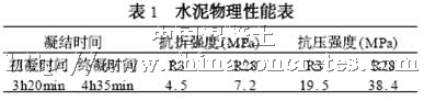 (1) 水泥: 山水32. 5R 普硅水泥,品質指標見表1 。