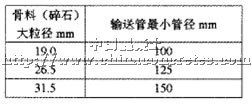 2.3 泵 送 混凝土輸送管徑的大小,決定了粗集料最大粒徑(方孔篩),其兩者之間的關(guān)系見表3表 3 水 泥混凝土輸送管徑與粗骨料最大粒徑的關(guān)系